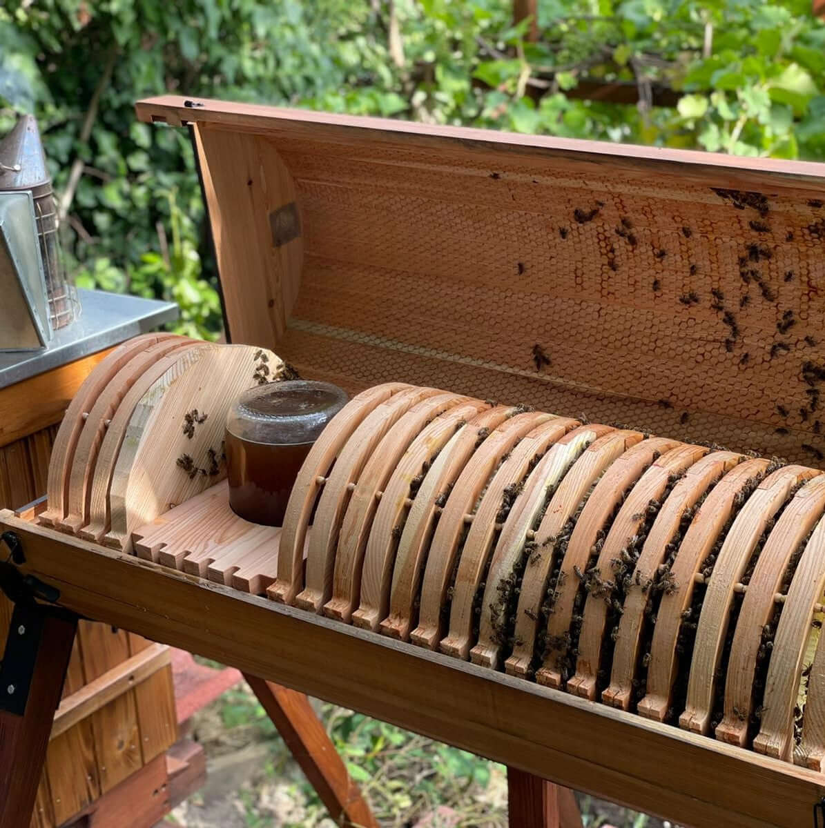 Our unique round frames are designed to mimic natural honeycomb formation. They encourage bees to thicken and ripen their honey more efficiently, enhancing both flavor and texture. The frames require no wires or full foundations — just insert a guiding strip and let the bees do the rest. When flipped, nectar flows downwards, helping bees complete the process perfectly. They’re easy to use, easy to extract, and built for generations of beekeepers.